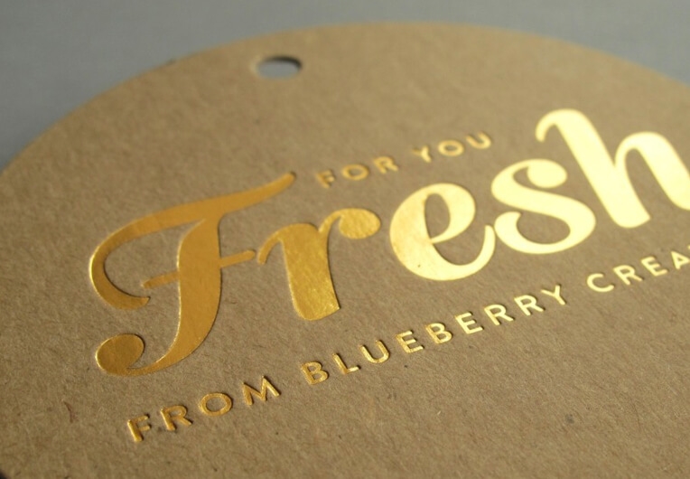 Stamped by the heated die with enough pressure to seal a thin layer of foil to the paper, and each color is applied individually through multiple runs of the press to create the final design.